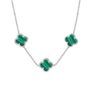 گردنبند نقره ونکلیف سه گل سبز