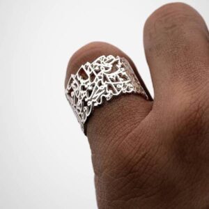 بنگل نقره گره و آویز دایره و سنگ آبی